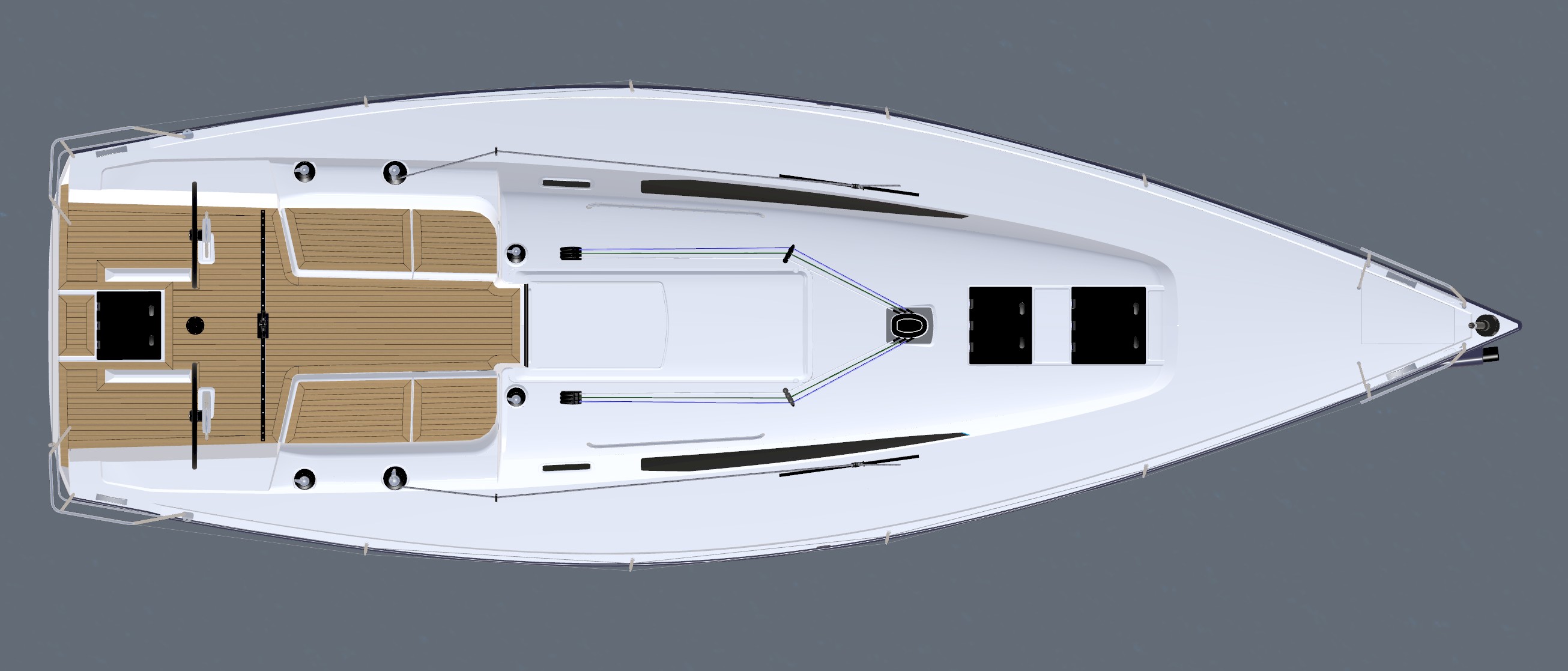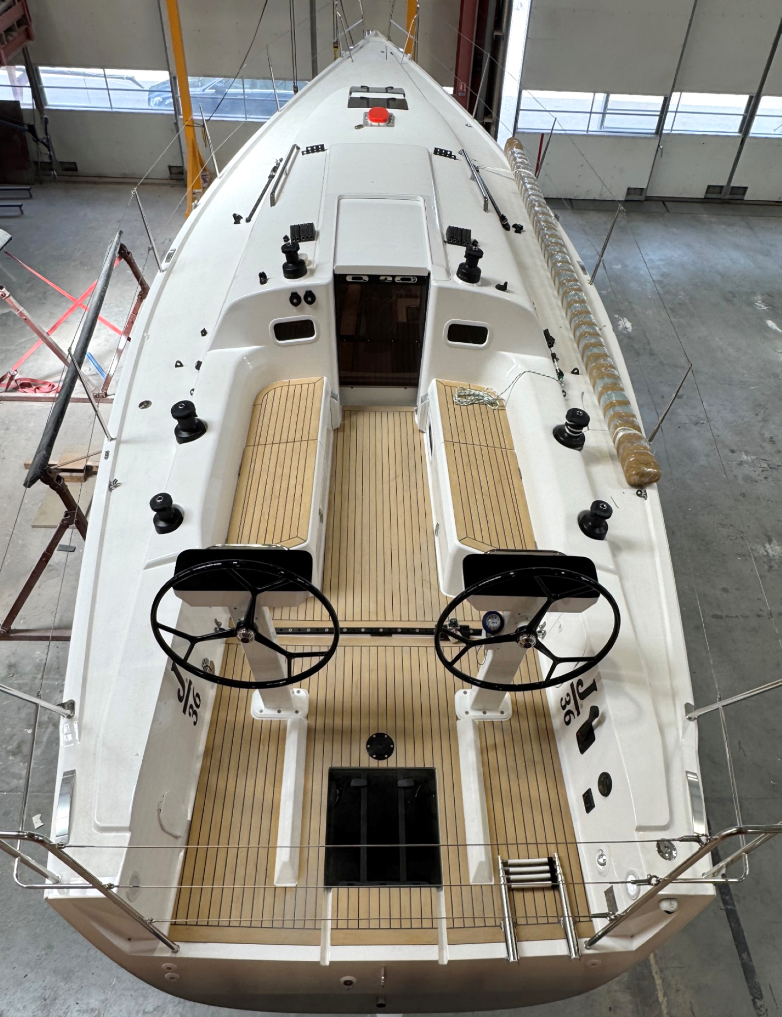 The evolution of the J/36 lies in its newly designed deck. The cockpit features fingertip twin-wheel steering, same-level walk-thru transom boarding, and comfortable cockpit seating. The same refined ergonomics that make the J/36 ideal for cruising also improve crew efficiency for racing. All essential sail controls lead to the cockpit and, as with all J's, the helmsperson can also trim the mainsail for easy solo sailing.