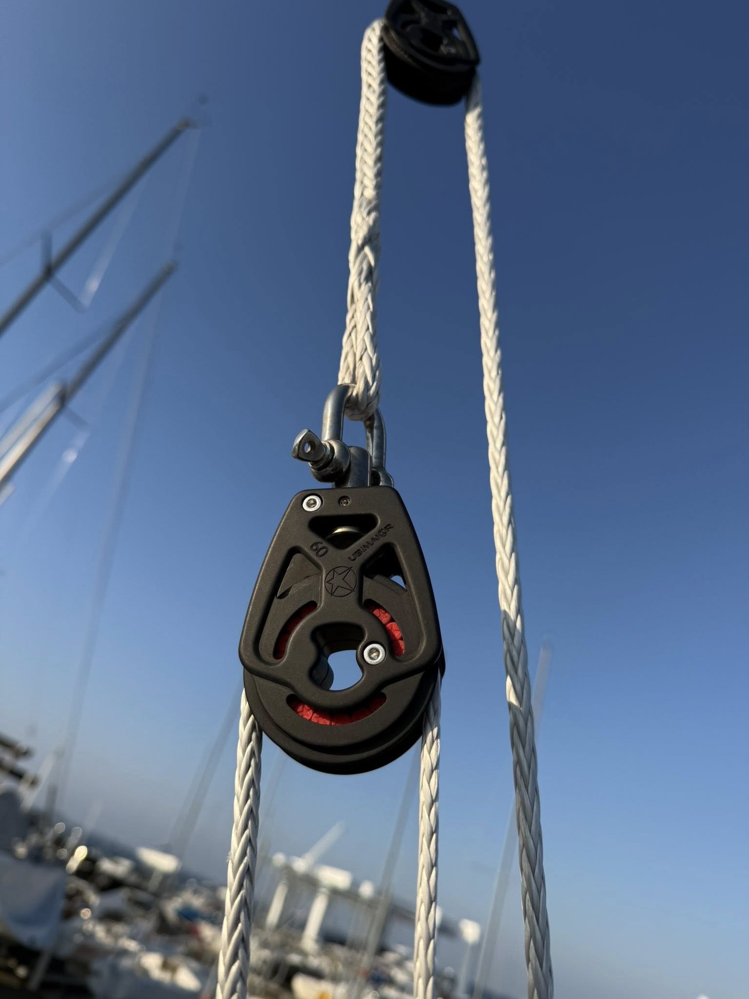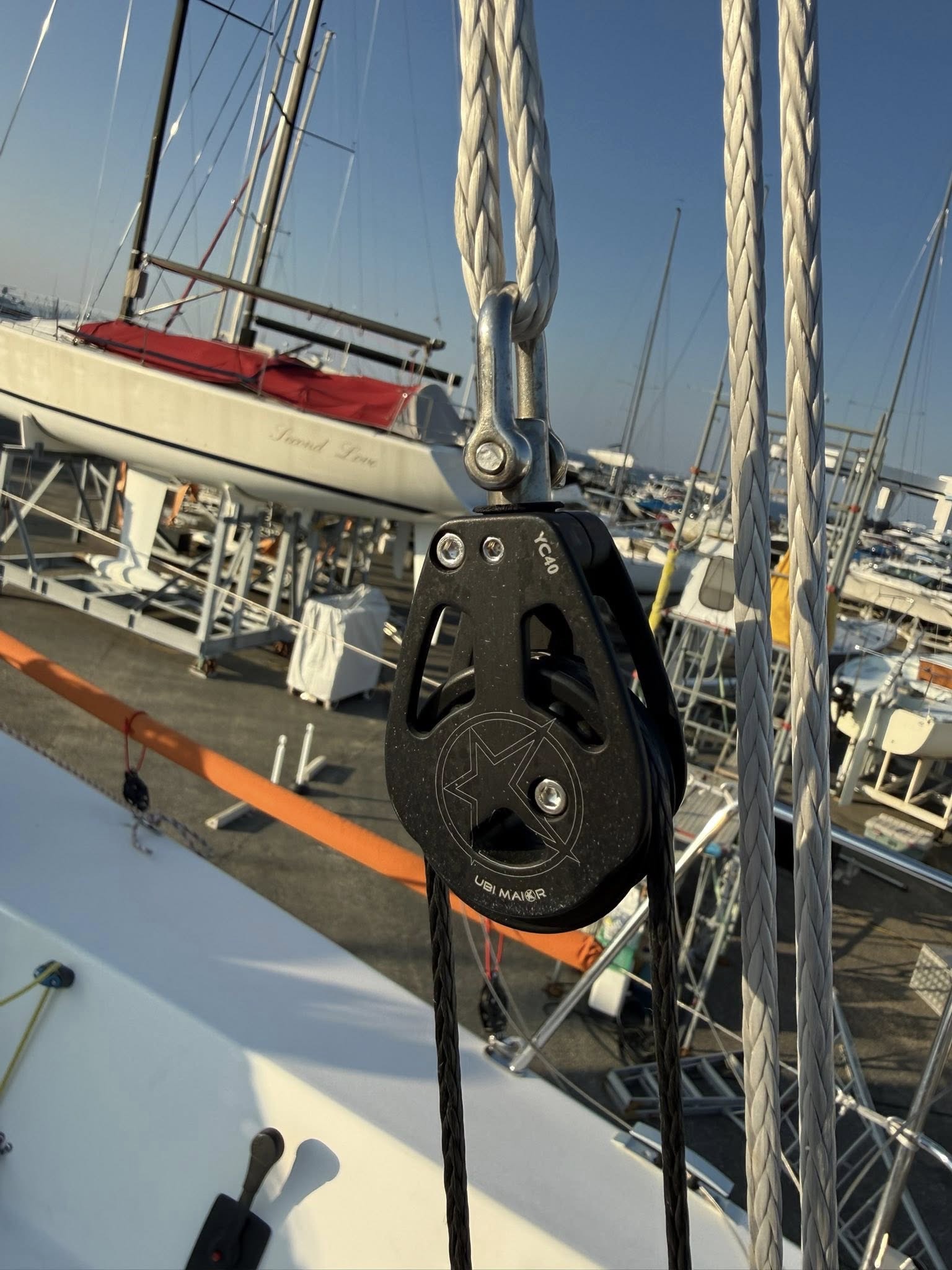 ブロックをUbi Miorに交換、ジェネカーハリヤードを交換しC-Clipを取り付けました。